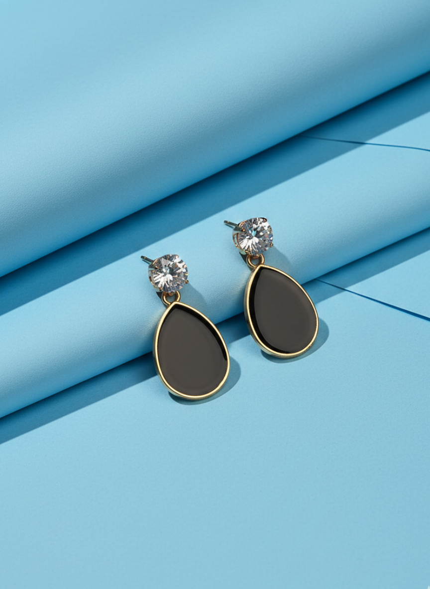 Elegant Black Teardrop Drop Earrings for Women – Gold Plated Crystal Stud Statement Jewelry