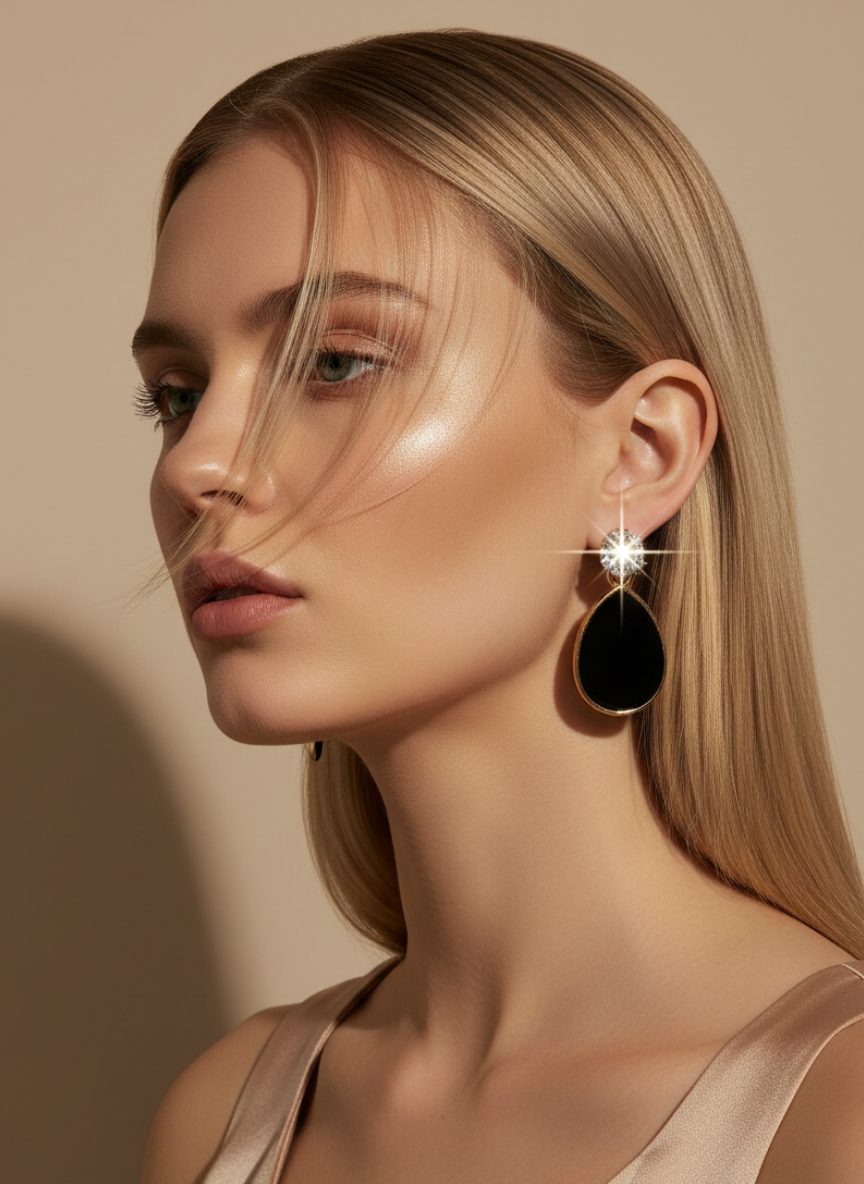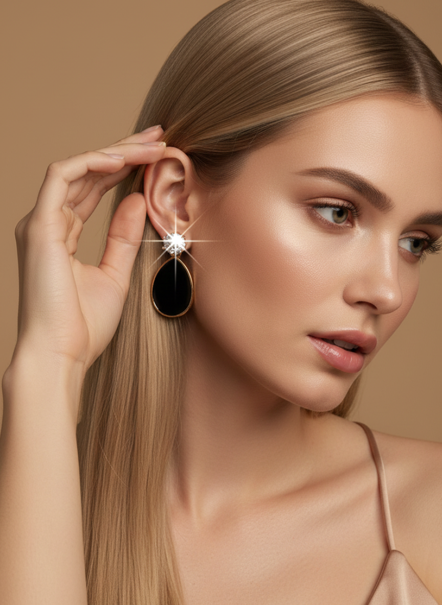 Add a touch of luxury to your style with these Black Teardrop Drop Earrings, designed with a smooth glossy teardrop charm framed in gold and paired with a sparkling crystal stud. Their timeless combination of black and gold creates an elegant, classy look perfect for parties, formal events, office wear, and everyday fashion. Lightweight, durable, and beautifully polished, these earrings make a stunning accessory for any outfit and an ideal gift for her.